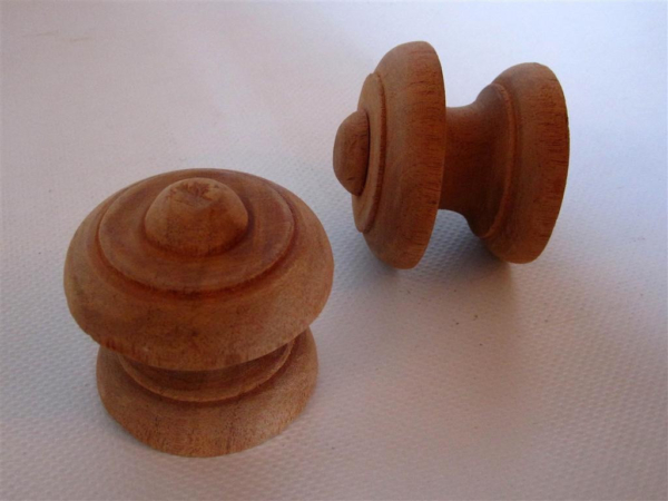 Möbelknopf aus Holz, Mahagoni, rund, groß, 53 mm ist ein großer runder Möbelknopf aus Mahagoniholz. Der Knopf hat die Form eines Pilzes: Die Oberseite ist kugelförmig mit einem Rand und einem schönen Zierknopf.