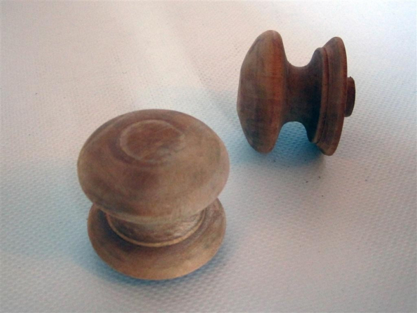 Holzmöbelknopf Mahagoni rund mit Stift 55mm ist ein großer runder Möbelknopf aus Mahagoniholz. Der Knopf hat die Form eines Pilzes mit einer flachen Oberseite.