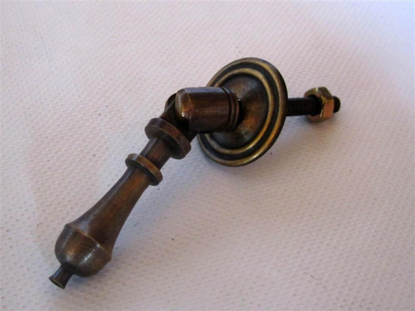 Schubladengriff, bronzefarben, antik, 66 mm ist ein klassischer Schubladengriff in Form eines Kleiderbügels. Der Anhänger hat eine bronzefarbene Oberfläche. Die Montageplatte ist rund. Dieser Kleiderbügel passt gut auf Ihre antike oder klassische Schublade.