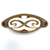 Cup handle Bronze antique with Ivory inlay 84mm is a solid shell handle with an antique bronze finish. The recessed handle has an ivory colored inlay. The recessed handle is of heavy quality. The appearance of the recessed handle is semi-gloss and smooth. This finger pull is suitable for heavy drawers.