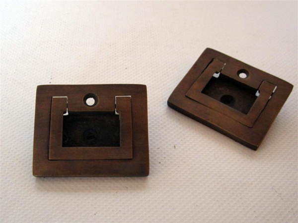 Hatch handle Brass antique rectangular 49x41mm is a sturdy handle with an antique brass/bronze finish. This hatch handle is elongated in shape and the handle is also rectangular.