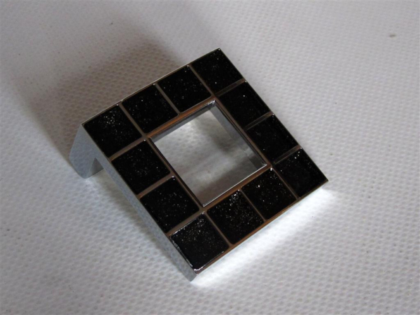 Handle square shiny chrome inlaid with black glitter large 49mm comes from the series 550 of the Luxury line of Giusti. The glossy chrome handle is inlaid with black epoxy parts that contain glimmer. Due to the glitter particles, the handle reflects the light beautifully.