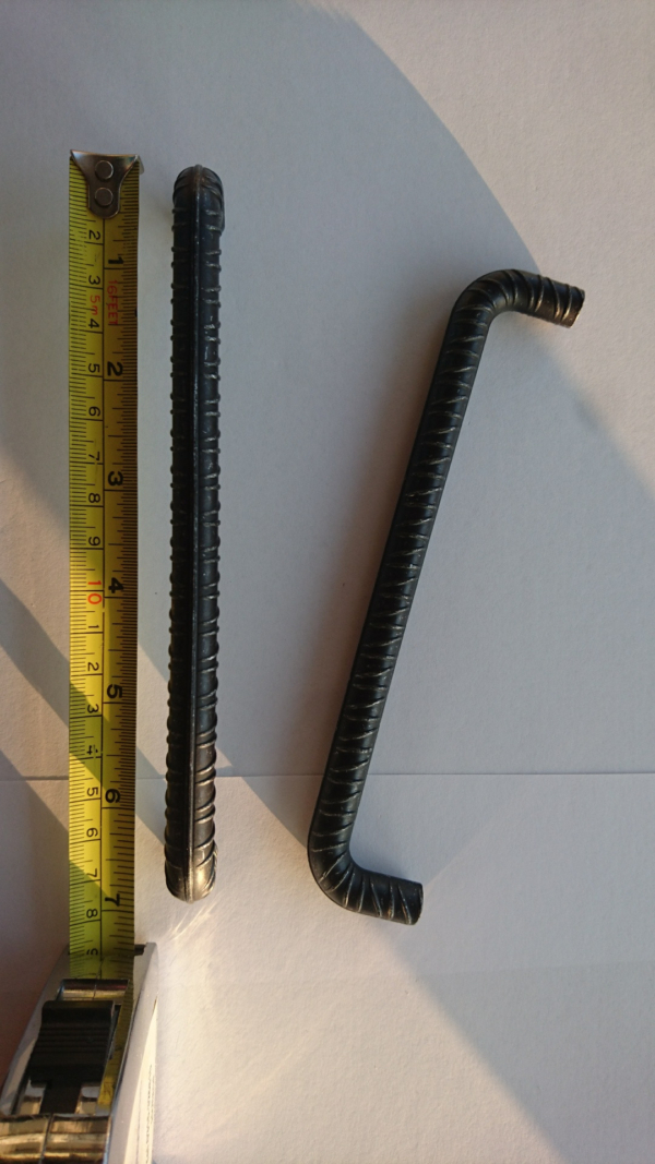 Handle Industrial Black 'Rebar' 170mm has a length of 170mm and a diameter of 11mm. The drill holes are 160mm apart. After installation, the handle protrudes 32mm.