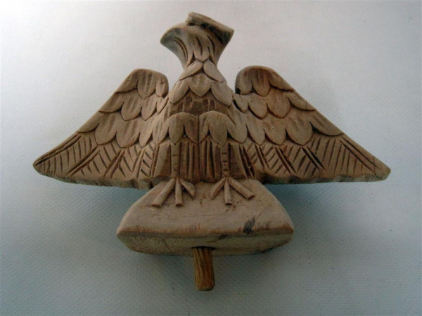 Wooden Eagle furniture ornament 16x11cm has a height of 11cm and a width of 16cm. You can mount the eagle on your furniture with the pin at the bottom of the ornament.