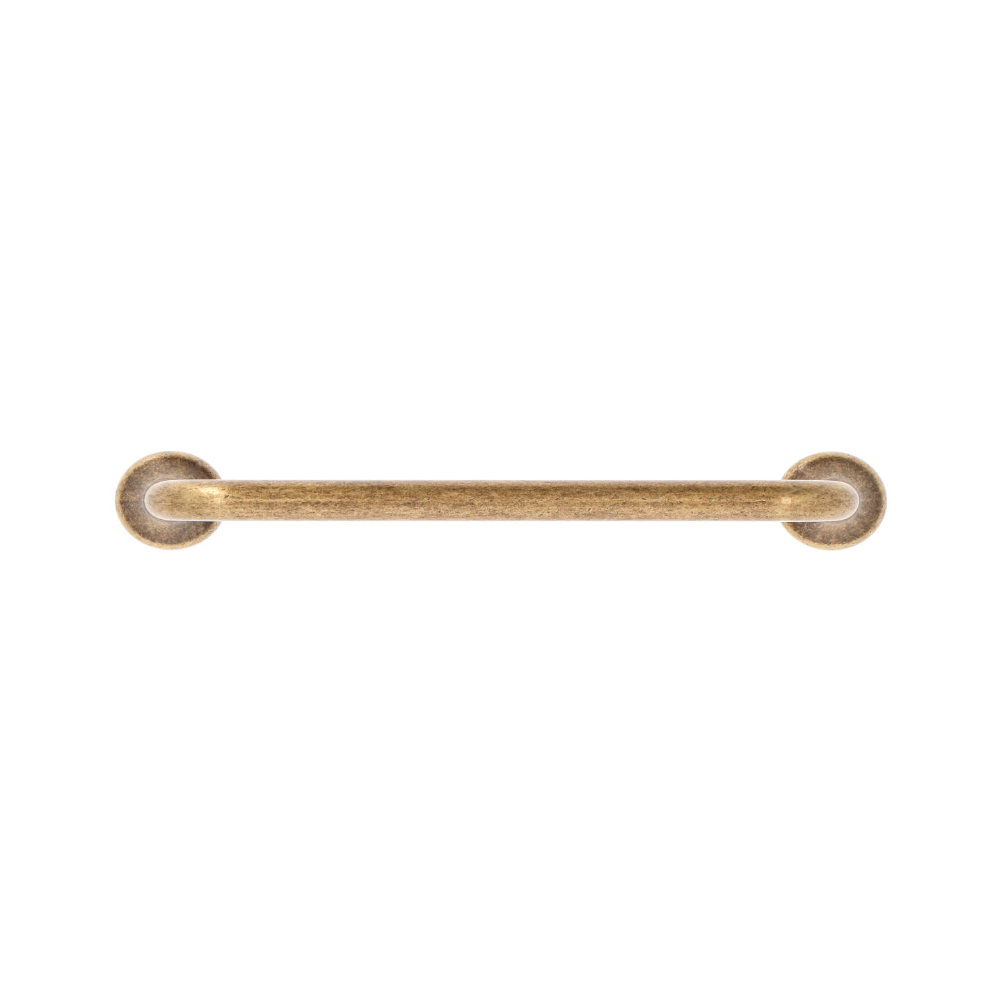 Handle Brass Antique curved 128mm is a sturdy furniture handle with a matt antique brass finish. The handle is round in shape with curved ends. The rosettes are round in shape. The handle is made of a zinc alloy which makes the handle very durable and robust.