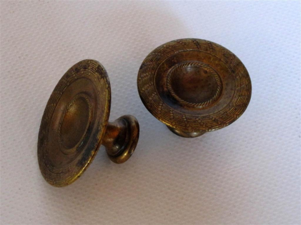 Knob Brass antique flat Ø 25mm is a beautiful, round furniture knob with an antique bronze-colored brass finish made of brass. The button is flat and decorated at the top. This knob fits well on your antique furniture or kitchen cabinet.