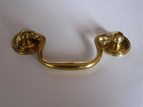 Drawer handle Brass 90x40mm is a simple classic drawer handle without a back plate made of zamak* with a shiny brass finish. This handle fits well on your antique or classic furniture and drawers.