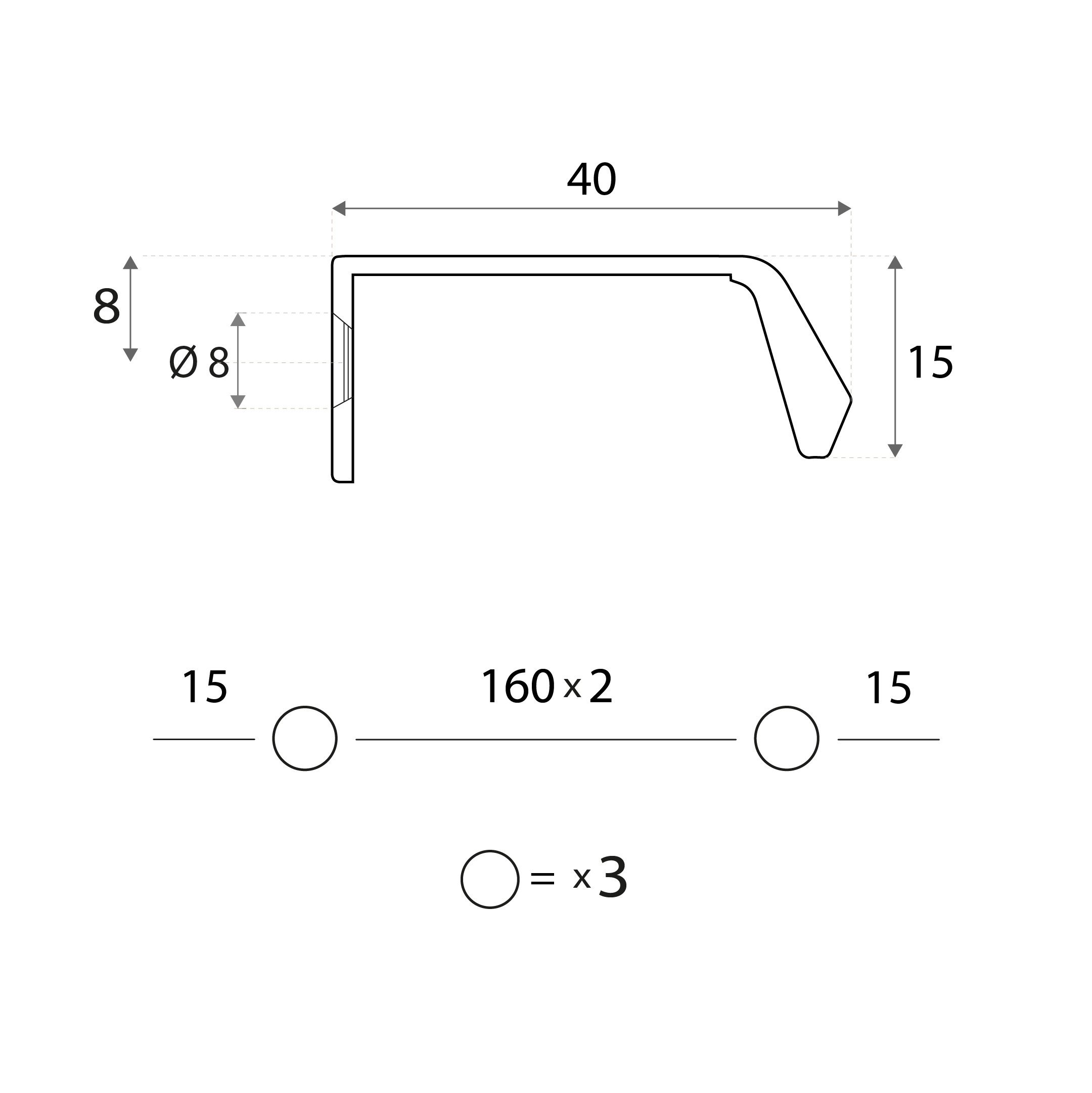 Profile handle Black matte Aluminium 350mm screw-on inside cabinet is 350mm wide and 16mm high. After installation, this handle protrudes 40mm. The drilling holes (center-to-center distance) are spaced 2x160mm apart. The handle weighs 113 grams.