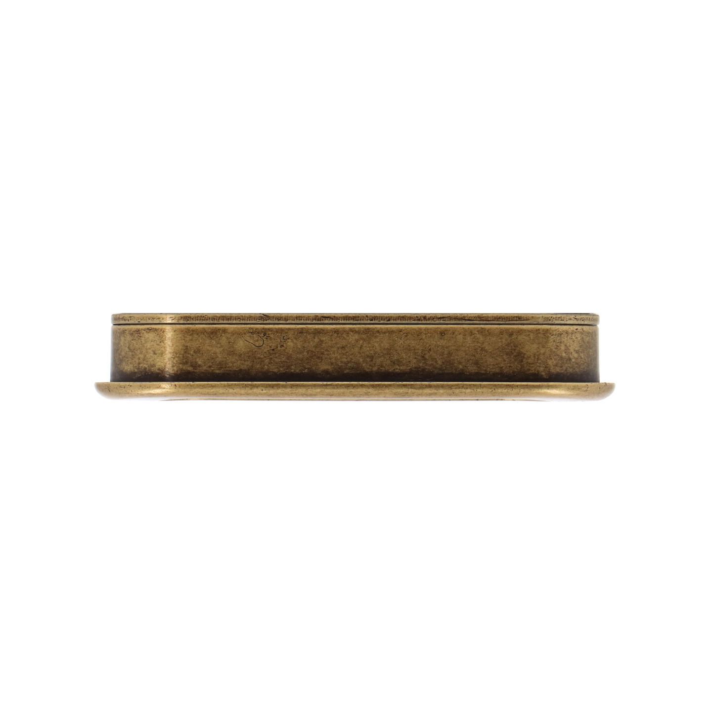 Recessed handle Antique Brass with rounded corners 75mm has a width of 90mm and a height of 31mm. The recess depth is 12mm. The drill holes are spaced 75mm apart.