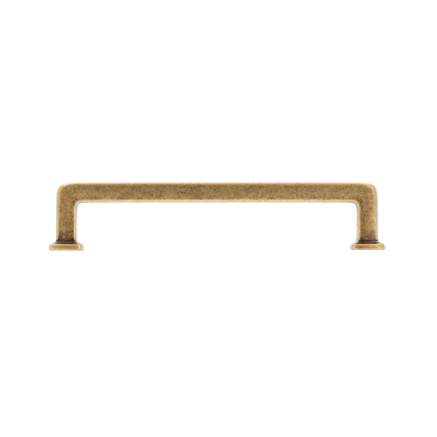 Greep Messing Antiek recht 128mm is een stoere meubelgreep met een mat antiek messing afwerking. De greep is vierkant van vorm met gebogen uiteindes. De zijdes zijn heel licht gebogen. De greep is gemaakt van een zink legering wat de greep erg duurzaam en robuust maakt.